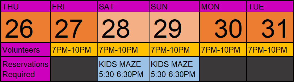 Our new adventure in fear will be open for the long Halloween Weekend only, Friday, Oct. 27, through Tuesday, Oct. 31. The Labyrinth Haunted House is recommended for teens and adults.